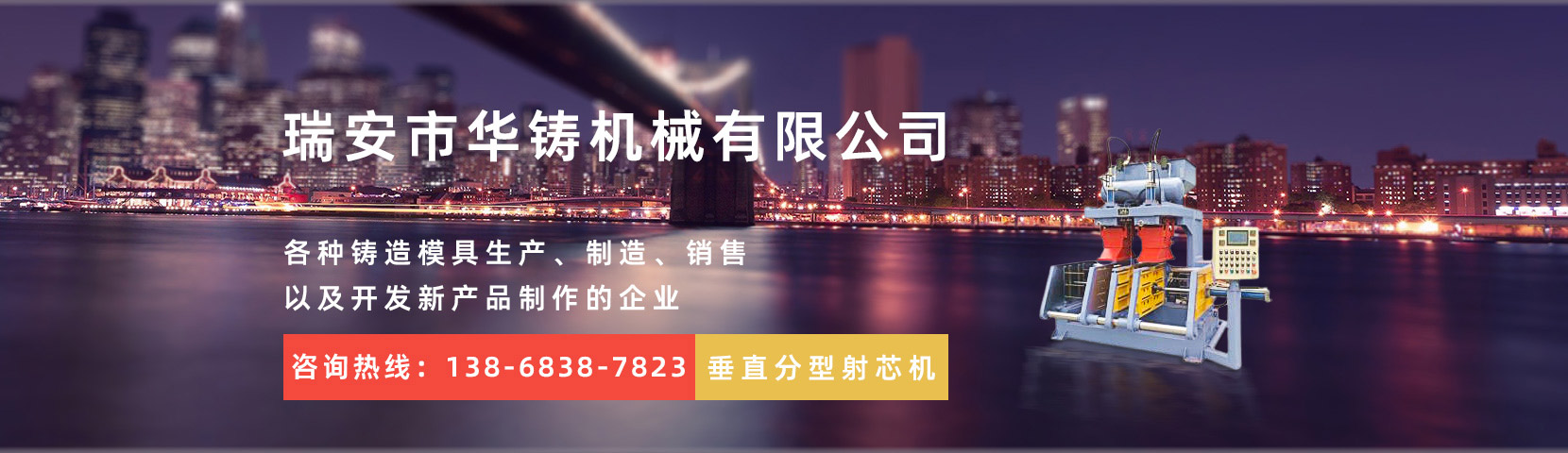 瑞安市華鑄機械有限公司,創(chuàng)建于2014年,位于經(jīng)濟發(fā)達的機械制造基地——溫州。本公司是一家致力于全自動重力澆鑄機、射芯機殼芯機、覆膜砂設備、各種鑄造模具生產(chǎn)、制造、銷售以及開發(fā)新產(chǎn)品制作的企業(yè)。